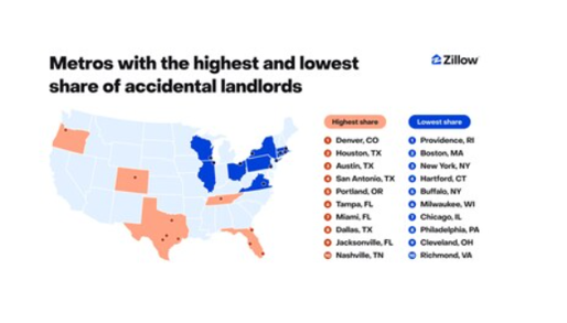 - Texas and Florida markets, along with Denver, Portland and Nashville, have the largest share of these accidental-landlord properties.