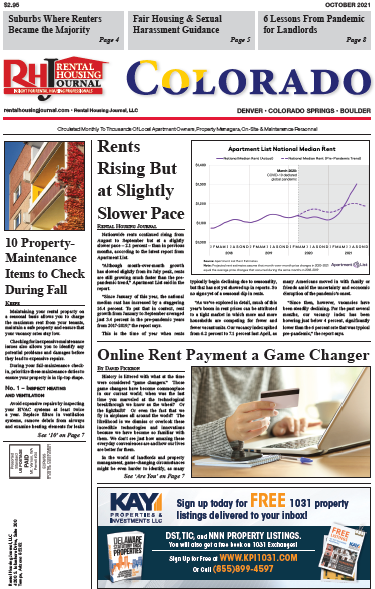 Colorado Rental Housing Journal is published monthly for Colorado subscribers.